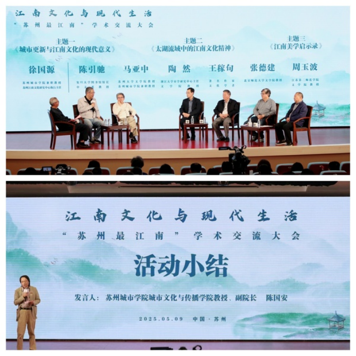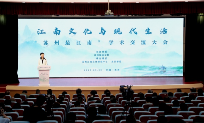 为深入贯彻落实党的二十届三中全会精神,全面推进苏州市“加快建成文化强市”的“811”计划中关于江南文化传承创新的重点行动,5月9日下午,由苏州城市学院主办,苏州江南文化研究中心和文正智库承办的“苏州最江南”学术交流大会在苏州城市学院学术报告厅举行。本次会议以“江南文化与现代生活”为主题,聚焦苏州在江南文化现代转化中的示范作用,解码江南文化基因与当代城市发展的融合机制,探索太湖流域“水韵江南”的文化内核,探讨江南美学的启示,为地方知识生产提供“苏州方案”。