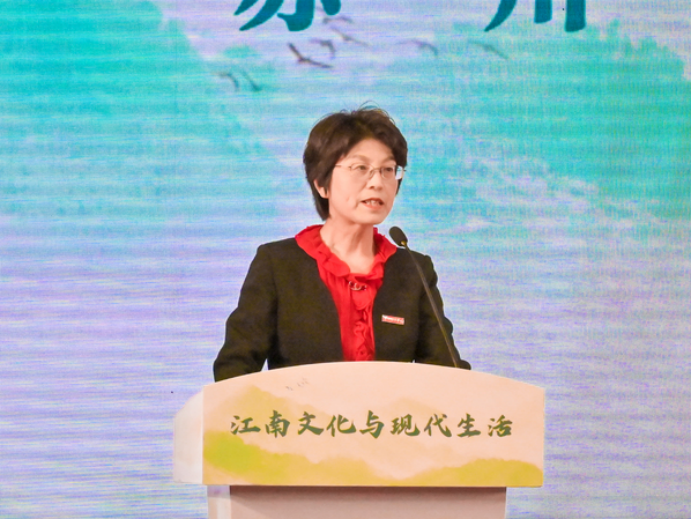 苏州城市学院党委书记周玉玲对各位嘉宾的到来表示热烈欢迎,并期待通过此次大会促进江南文化研究的深入与交流。她指出,苏州在江南文化的保护与研究领域展现出非凡的担当,走在了时代的前沿。苏州深挖文化根源,积极创新传播路径,全力提升“江南文化”的传播力与影响力。未来,苏州城市学院将以更高的使命感和责任感进一步发挥学科优势,深化产学研合作,通过生动鲜活的方式,讲好“最江南”的苏州故事,为江南文化注入源源不断的新活力,让江南文化在学术研究的推动下,不断传承发展,走向更加辉煌的未来。